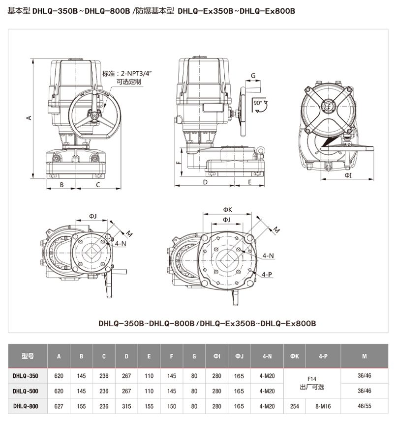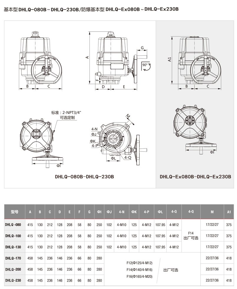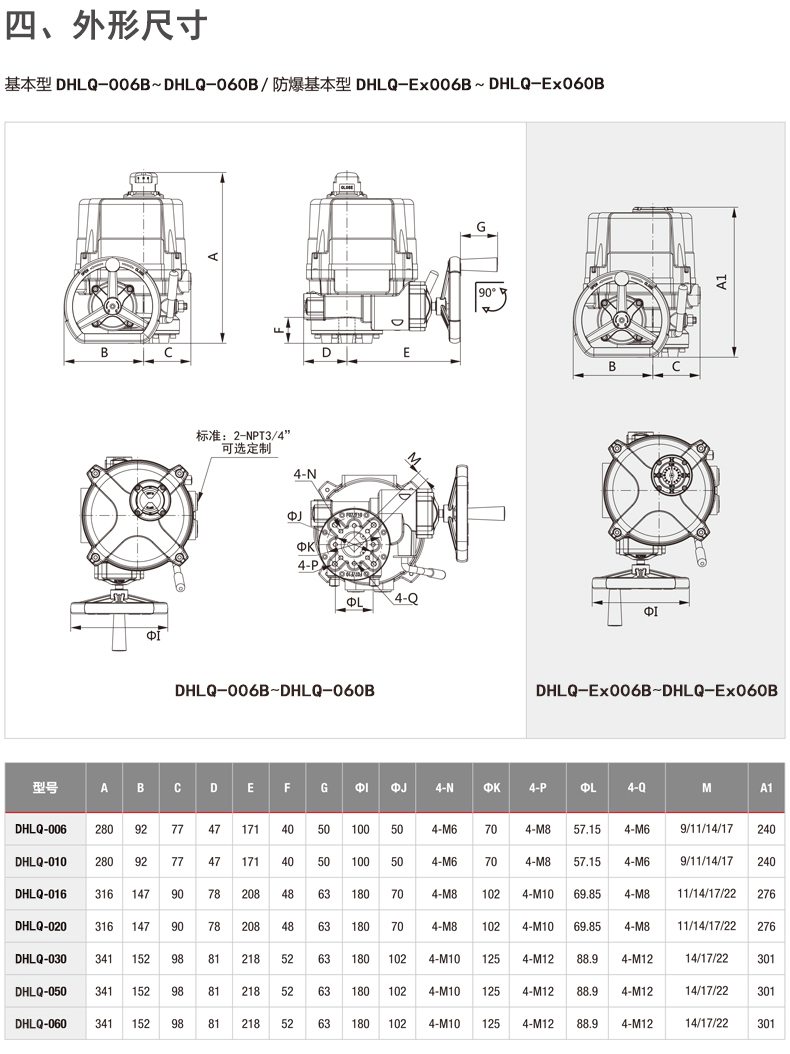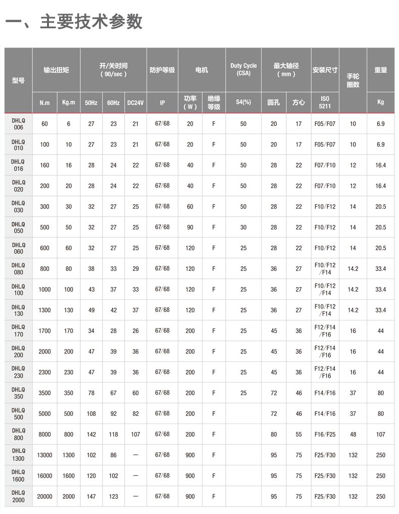手動操作:DHLQ-006~DHLQ-060手動/自動離合機構(gòu) DHLQ-080~DHLQ-2000無需離合機構(gòu)
